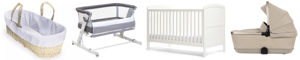 Your main options for a sleep space for a newborn baby are a moses basket, a crib or bedside crib, a cot/cotbed, or a carrycot.