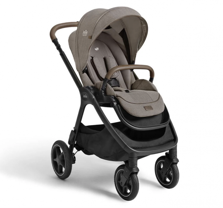 The pushchair comes with a lie-flat seat that can be used from birth, but I’d recommend investing in a carrycot to use for the first 6 months. It’s compatible with the Ramble XL (£150) or with Joie’s hybrid carrycot-car seat, the Calmi (£390 including the base) for a does-it-all newborn package.